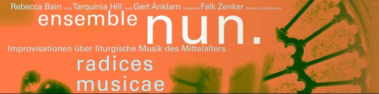 Es spielt das ENSEMBLE NUN: Gert Anklam - Saxophon; Falk Zenker - Gitarre, Life-Elektronic; Rebecca Bain - Gesang; Tarquinia Hill - Gesang. In Zusammenarbeit mit dem Kulturamt Berlin-Schöneberg. ORT: St. Matthias, Winterfeldplatz, 10781 Berlin-Schöneberg (Nähe U-Bahnhof "Nollendorfplatz") Eintritt: 8,- Euro, 6,- Euro (erm.) mehr Informationen |